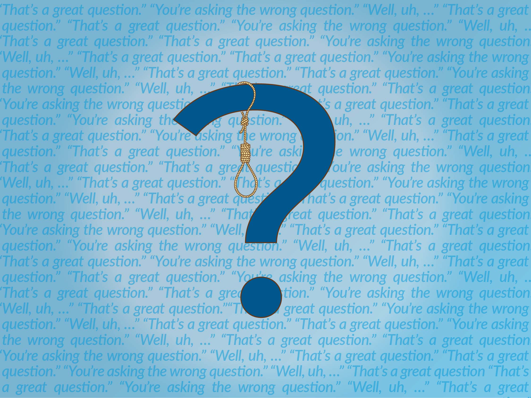 During new business and client meetings, “That’s a great question” has become almost as ubiquitous as “Thank you for having me” at the start of virtually every television interview. A client recently asked me, “Several members of my team often say, ‘That’s a great question’ before answering. What do you think about this?” Here’s what I think: I think that everyone says “That’s a great question” all the time. (While writing this, I asked my favorite bot about the correct placement of a hyphen. The bot’s response started with “That’s a great question, Liz.”) The question might indeed be blazingly insightful. But more often it is an ordinary, expected question. So calling it “great” seems insincere. “That’s a great question” frequently precedes a rambling, indecisive answer. Some even perceive it as a sign of deception.1 And finally, presenters say “great question” so many times during Q&A that it has become a form of predictable clutter akin to filler such as “kind of” and “you know” and non-words such as “um” and “uh.” There is a better way: the simple power of a thoughtful pause. A pause confers a valuable moment or two to structure your response. A pause is the absence of noise. In marked contrast to clutter such as “That’s a great question” and the like, a brief pause very often precedes a thoughtful, articulate response. Try it the next time you present. Pausing before answering a question is hard to do; there is a strong natural tendency to say something before responding. To get good at pausing, watch people being interviewed on television. You will see that very few resist the urge to provide a preamble of some sort when answering every question. And you will see how powerful it can be to simply answer the question. Tough Questions A bumbling response to tough questions like these can derail even the best planned meetings: